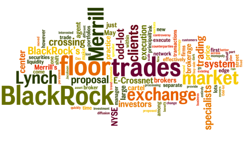 BlackRock would raise the specter of crossing trades again in late 2010. The FT quoted BlackRock president, Rob Kapito, on 28 December 2010: “We are developing the technology in-house to offer better value by lowering trading costs.” BlackRock’s push was quickly compared to the ill-fated E-Crossnet collaboration between Merrill Lynch Investment Managers and Barclays Global Investors in 2000. The collaboration aimed to provide a buy-side only crossing network to circumvent traditional brokers. E-Crossnet was part of the same shift from the center of the marketplace that began in 1975, but it had more in common with existing ECNs of the time. It failed to gain traction and was sold to ITG who combined it with the POSIT dark pool – effectively as an external agent. BlackRock, however, would operate as a principal, crossing trades across its vast collection of portfolios. BlackRock would effectively create a mini stock-exchange, separate from the NYSE and separate from everyone else, entirely, and entirely different than E-Crossnet.