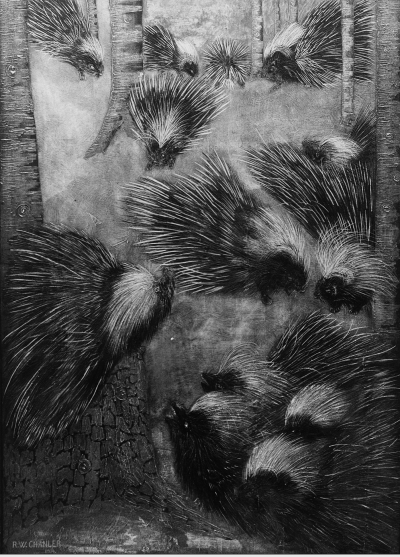 Robert Winthrop Chanler, muralist, painter, grandson of John Jacob Astor, and otherwise known as Sheriff Bob Chanler to his friends. The NYT printed full-color photos of a screen of the Leopard and the Deer and the mural from the crow room in situ at the Rokeby House in the slideshow accompanying the article on the same.